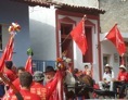 Divineiros de Joanópolis em Caraguatatuba. Encontro de grupos que cultivam tradições do Espírito Santo a convite de organizações locais. A prática das cavalgadas do Espírito Santo em Joanópolis/SP é resultado de esforços de revitalização consciente de expressões culturais promovidos por especialistas em Folclore sob a direção da Profa. N. Rodrigues Gomes, Comissão Paulista de Folclore.
