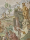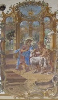 Essa pintura que é em consideração superficial meramente ilusionista (Trompe-l‘oeil) expressa ostentativamente, em linguagem por assim dizer campônea ou pastoril, criadora de uma atmosfera bucólica e idílica nas cidades alpinas, interações entre a história bíblica e eclesiástica com a cultura humanística fundamentada na Antiguidade Clássica, entre o mundo natural e o seu sentido religioso.