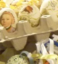 As vitrines dessas lojas apresentam combinações entre ovos decorados com materiais resplandescentes de efeitos luz e bolas que similares àquelas de Natal, brilhantes em cores claras, brancas e prateadas, sugerindo trabalhos de joalheira.