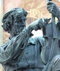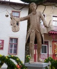 Ao lado da igreja matriz de Mittenwald, eleva-se um monumento a M. Klotz, mostrando-o na construção de um instrumento.