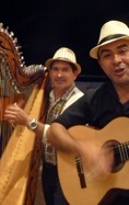 Música brasileira em harpa paraguaia: Los Latinos Paraguayos. O Duo Alberto Benitez (canto) Dany Brisa (harpa), que se empenha em divulgar a música do Paraguai e de países vizinhos na Europa, destaca-se por incluir choros brasileiros em versão para harpa e violão nas suas apresentações. Ambos provenientes de família de músicos, obtiveram a sua formação no Conservatório Municipal de Assunção. Enquanto A. Benitez realizou estudos superiores em canto e matérias teóricas, D. Brisa seguiu a tradição harpista de seu pai. Passou a dedicar-se ao estudo do instrumento e à sua pesquisa, reconhecendo as suas potencialidades artísticas e o seu significado cultural. Após um período em que se perderam de vista, voltaram a tocar juntos, em festas particulares e em concertos, cultivando um repertório variado, em particular de música tradicional e popular paraguaia de guaranias, valsas e polcas.