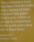 Logo à entrada, os visitantes são recebidos por inscrição em pedra que dá as boas vindas à terra ancestral do povo Musqueam de determinado ramo linguístico. Uma placa lembra que os recém-chegados - europeus e de outras proveniências - encontram-se na região apenas desde um curto espaço de tempo: menos do que 200 anos, o que é apenas um piscar de olhos em comparação com os 9000 anos que os indígenas ali vivem.